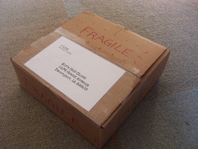 Address your package and you are ready to ship! I always mark "FRAGILE" in bold letters several times on the box. From the way I see the clerks at my Post Office handle these boxes after I pass them over the counter, I have no reason to believe that writing "FRAGILE" improves their treatment one bit, but I figure it can't hurt. Even the best-packed boxes can sometimes be damaged in shipping, so if your 78s are of considerable value, I would recommend opting for USPS insurance when you mail them. |